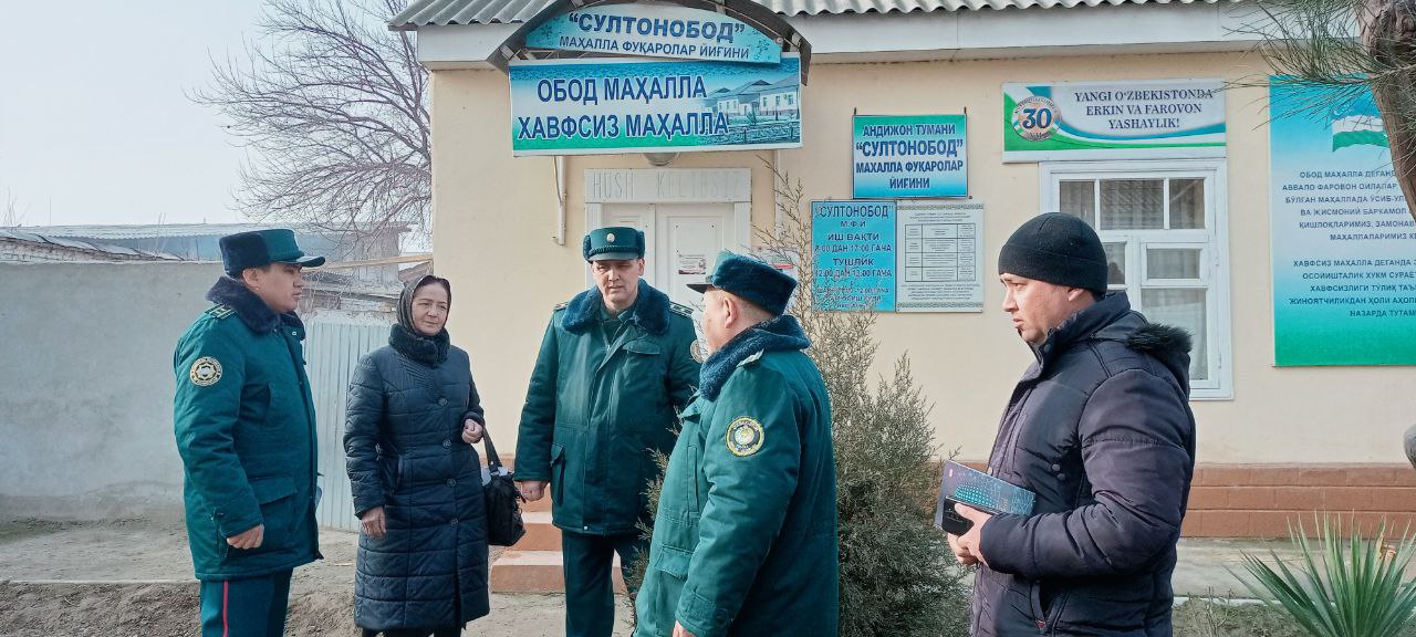 Andijon tumanining “Sultonobod” mahallasida huquqbuzarliklar profilaktikasi va jinoyatchilikni jilovlash bo‘yicha “fuqarobay” ishlash metodikasi samarali tatbiq qilinmoqda.