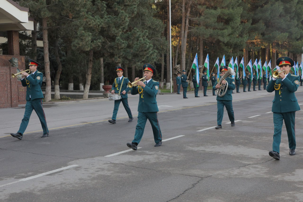 Shundan so‘ng kursantlar bayrog‘imizni baland ko‘tarib, saf qo‘shiqlarini ijro etgan holda tantanali yurish bilan o‘tdilar. Tadbir poytaxt ahli va mehmonlariga “Sharaf lentalari”ni tarqatish bilan davom etdi. Orkestr ijrosidagi kuylar yurtdoshlarimizga chinakam bayromona shukuh bag‘ishladi, desak, mubolag‘a bo‘lmaydi.