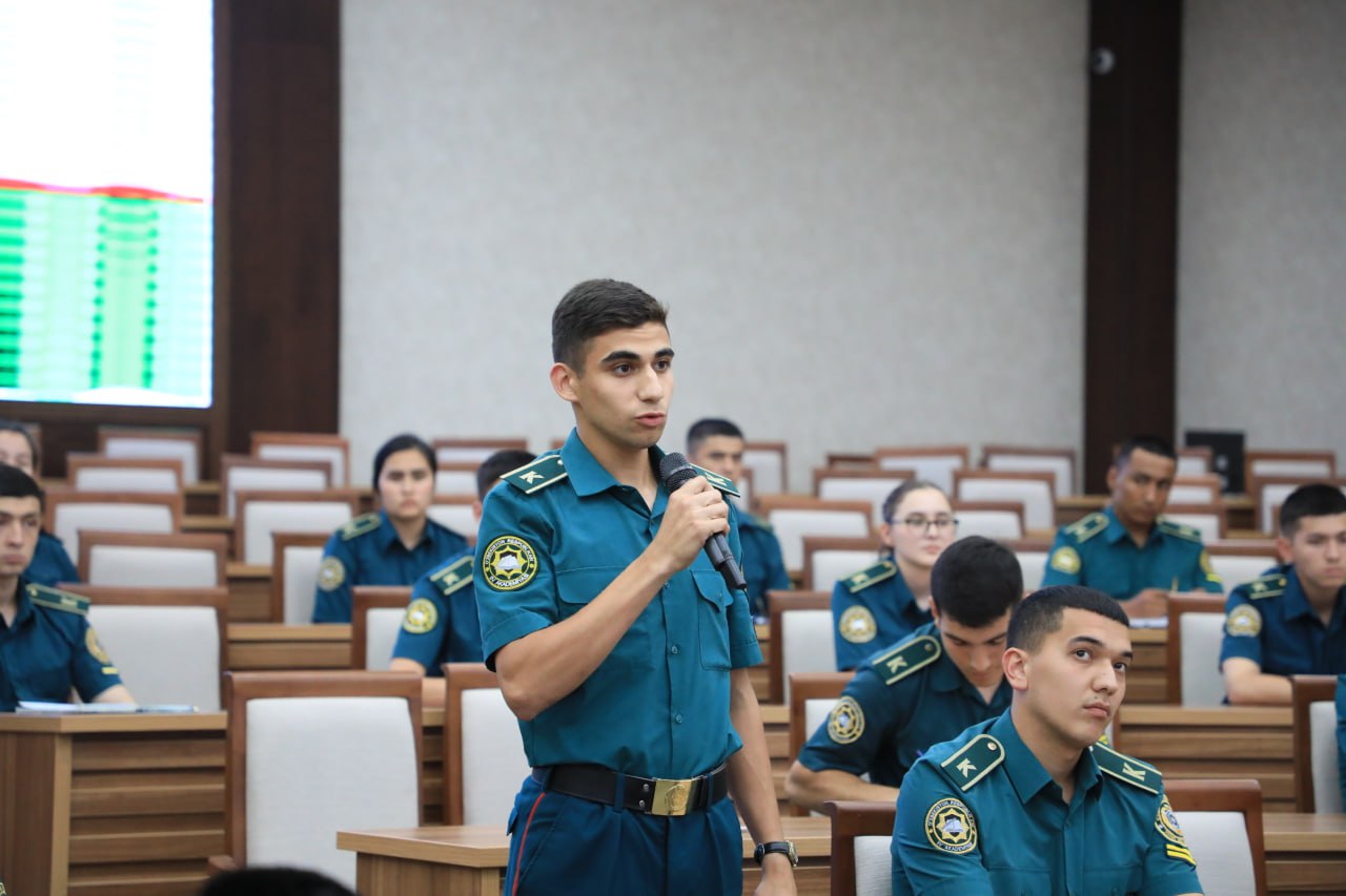 – Mamlakatimizda kechayotgan yangilanishlar yoshlardan yuksak bilim va salohiyatni, yurtga daxldor, vatanparvar, shijoatli bo‘lishni talab etmoqda, – dedi o‘quv muassasasi rahbari. – Buning uchun kursantlarimiz islohotlarning mazmun-mohiyatini anglagan holda davr bilan hamnafas bo‘lishlari, ta’bir joiz bo‘lsa, Yangi O‘zbekistonning mustahkam tayanchiga aylanishlari kerak.