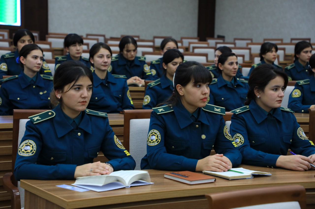 Ichki ishlar vazirligi akademiyasida “Ayoli qadrli yurtning kelajagi buyukdir” mavzuida uchrashuv bo‘lib o‘tdi. O‘quv-saf qismi tashabbusi bilan tashkil etilgan tadbirda ma’naviyat targ‘ibotchilari, hakamlik sudlari vakillari, qizlar otryadi ofitserlari hamda kursantlar ishtirok etdi.