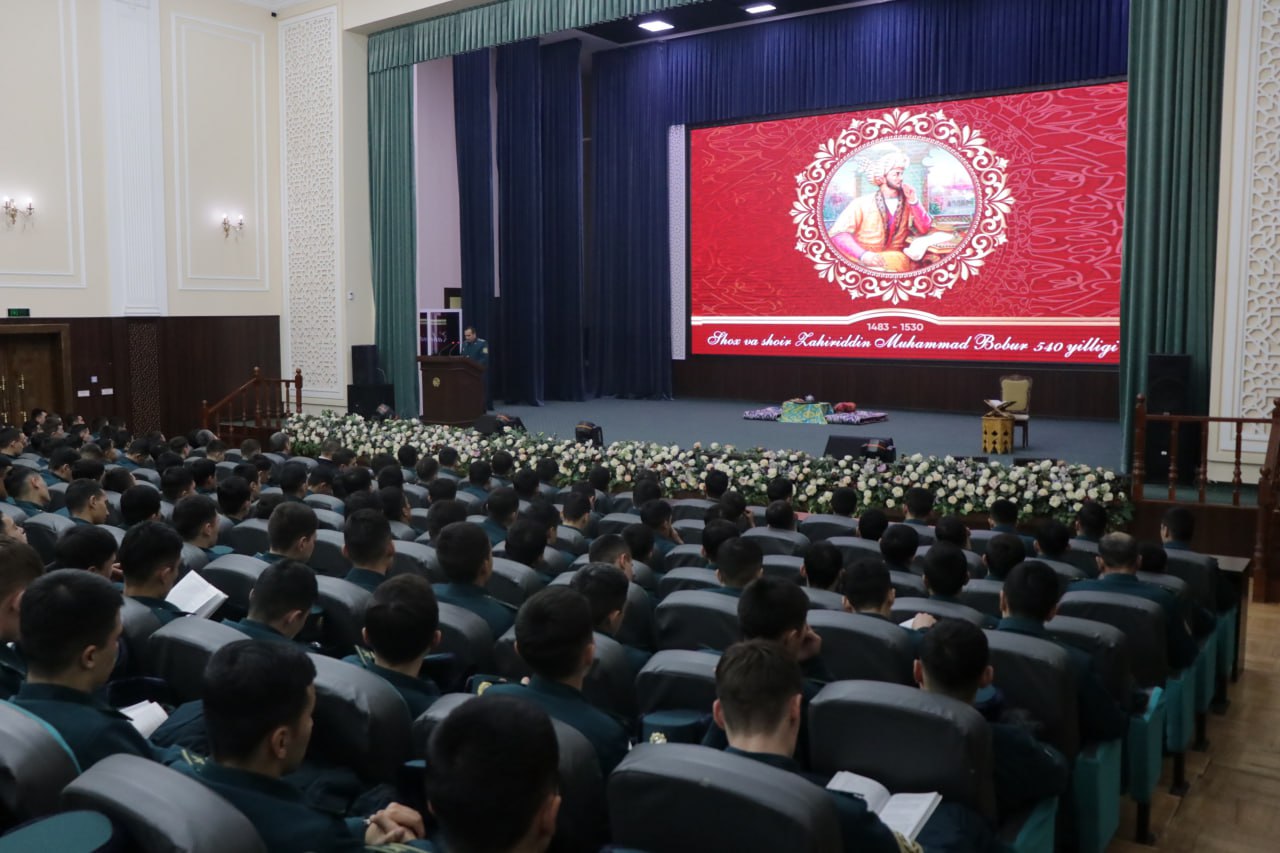 Ma’naviy-ma’rifiy tadbirda Bobur shaxsiyatining o‘ziga xos qirralari, shoir asarlarida ulug‘langan g‘oyalar, ulug‘ vatandoshimizning davlat arbobi sifatidagi serqirra faoliyati, ayniqsa milliy adabiyotimiz rivojiga qo‘shgan betakror hissasi haqida qimmatli fikrlar bildildi. Akademiya badiiy havaskorlik jamoalari va iqtidorli kursantlar tomonidan Mirzo Boburning hayoti va ijodiga bag‘ishlangan sahna ko‘rinishlari namoyish qilindi.