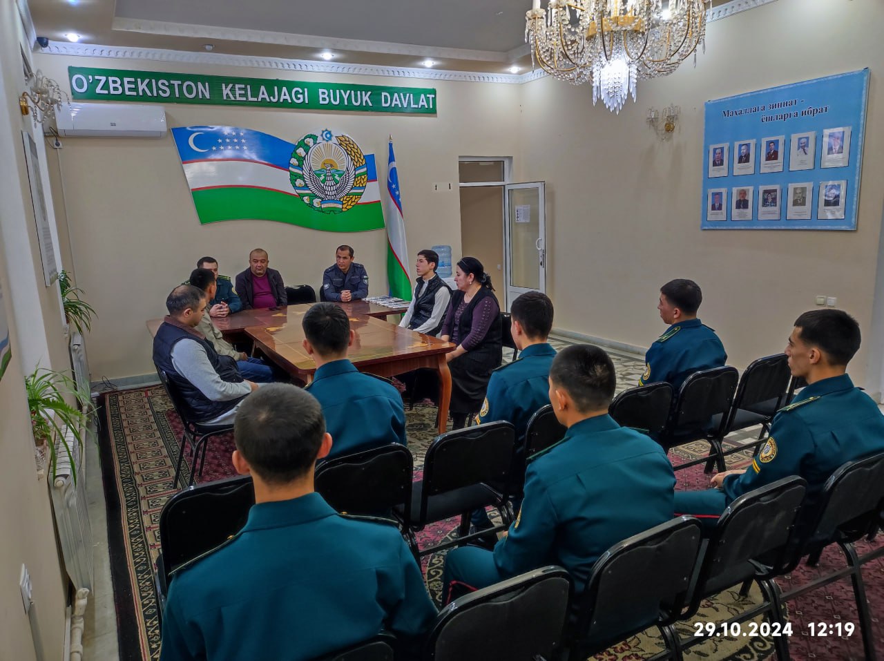 Ёшлар билан мулоқот чоғида ҳуқуқий жамият ва қонун устуворлиги тушунчаларининг мазмун-моҳияти, ёш авлодда қонунга итоаткорлик ҳиссини шакллантириш йўллари, жиноят содир этишнинг ҳуқуқий оқибатлари тушунтирилиб, ўқувчиларнинг касбий қизиқиши, олий таълим муассасаларида ўқиш имкониятлари, мактаблардаги фан ва спорт тўгараклари фаолияти ўрганилди.