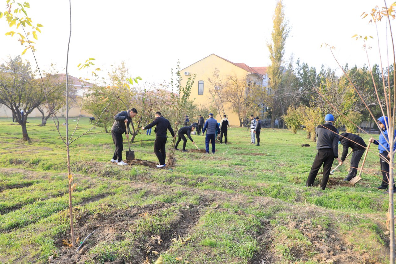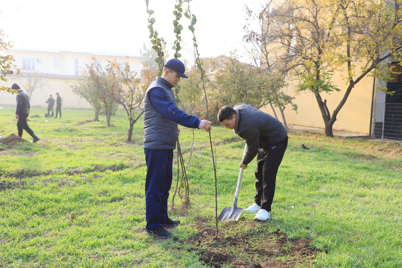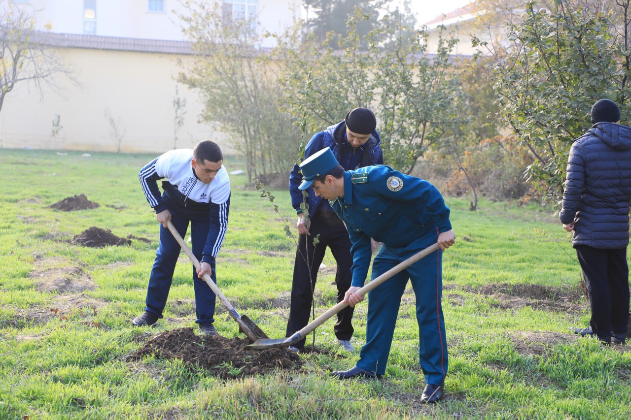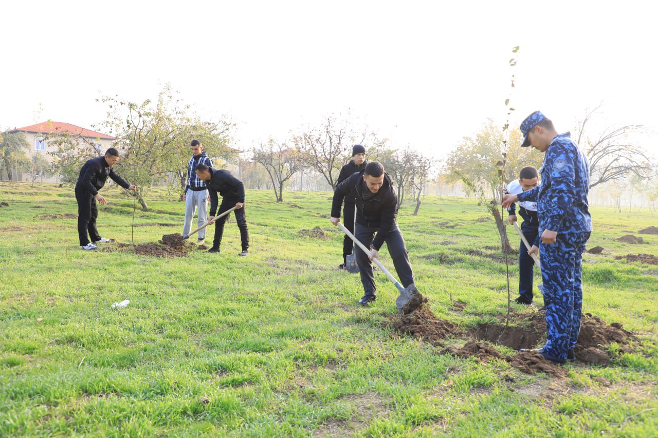 Тадбир аввалида маскан тарбияланувчилари ҳолидан хабар олинди. Шундан сўнг ҳудудларга 142 туп мевали дарахт кўчатлари ўтқазилди. Фаол курсантларнинг саъй-ҳаракати билан кўкаламлаштириш юмушлари бажарилиб, экилган манзарали дарахтларга ишлов берилди.