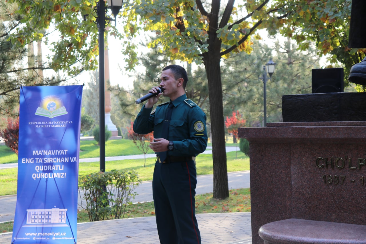 Республика Маънавият ва маърифат маркази ташаббуси билан Абдулҳамид Чўлпон ҳайкали пойида ўтказилган тадбирда Ёзувчилар уюшмаси аъзолари, адабиёт ихлосмандлари, ИИВ Академияси вакиллари ҳамда ўқитувчилар иштирок этди.