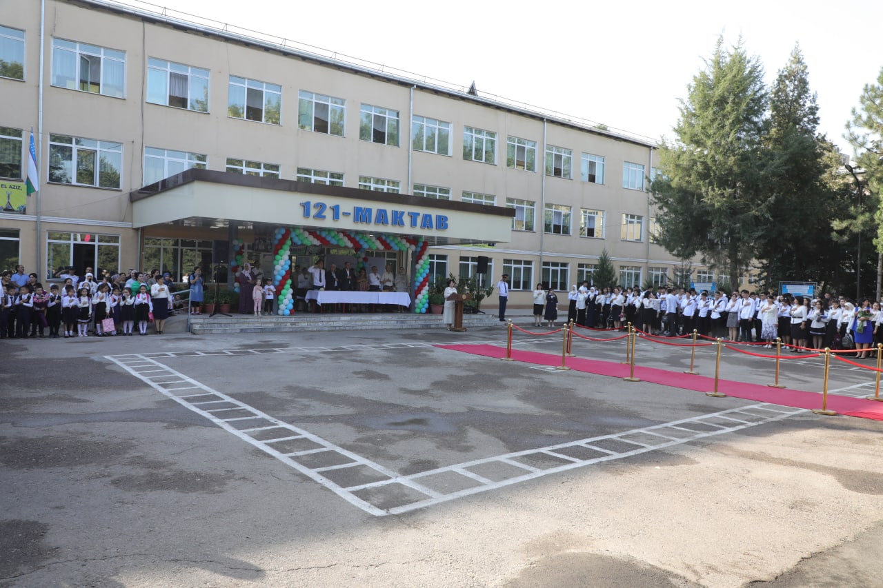 Юртимиздаги барча таълим муассасаларида бўлгани каби пойтахтимизнинг Мирзо Улуғбек туманидаги 121-сонли умумий ўрта таълим мактабида ҳам янги ўқув йили тантана билан қарши олинди.