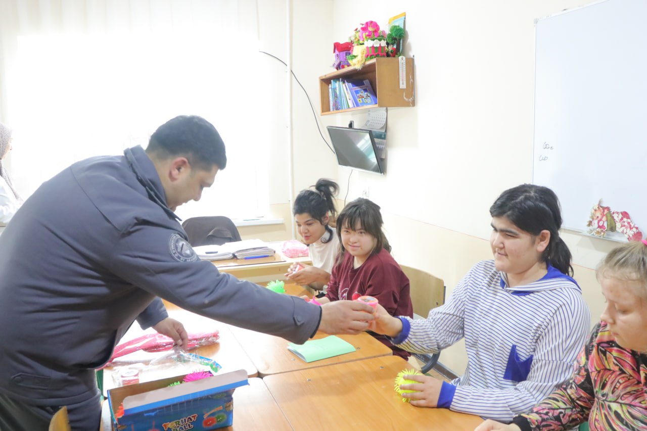 ИИВ академияси вакиллари ҳам хайрли ишга бош бўлиб, пойтахтимизнинг Мирзо Улуғбек туманидаги 105-сон имконияти чекланган болалар мактаб-интернати тарбияланувчиларидан хабар олишди.