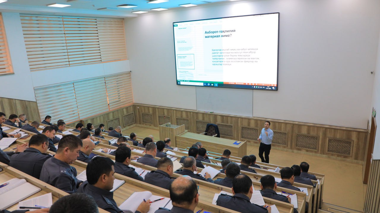 Ma’lumki, davlat organlari tizimida axborot-tahlil ishining samarali yo‘lga qo‘yilgani islohotlar natijadorligini ta’minlaydi. Magistratura tinglovchilari uchun tashkil qilingan o‘quv kursi ham ichki ishlar organlarida axborot-tahlil faoliyatini takomillashtirish, rahbar kadrlarning salohiyatini oshirishga qaratildi.