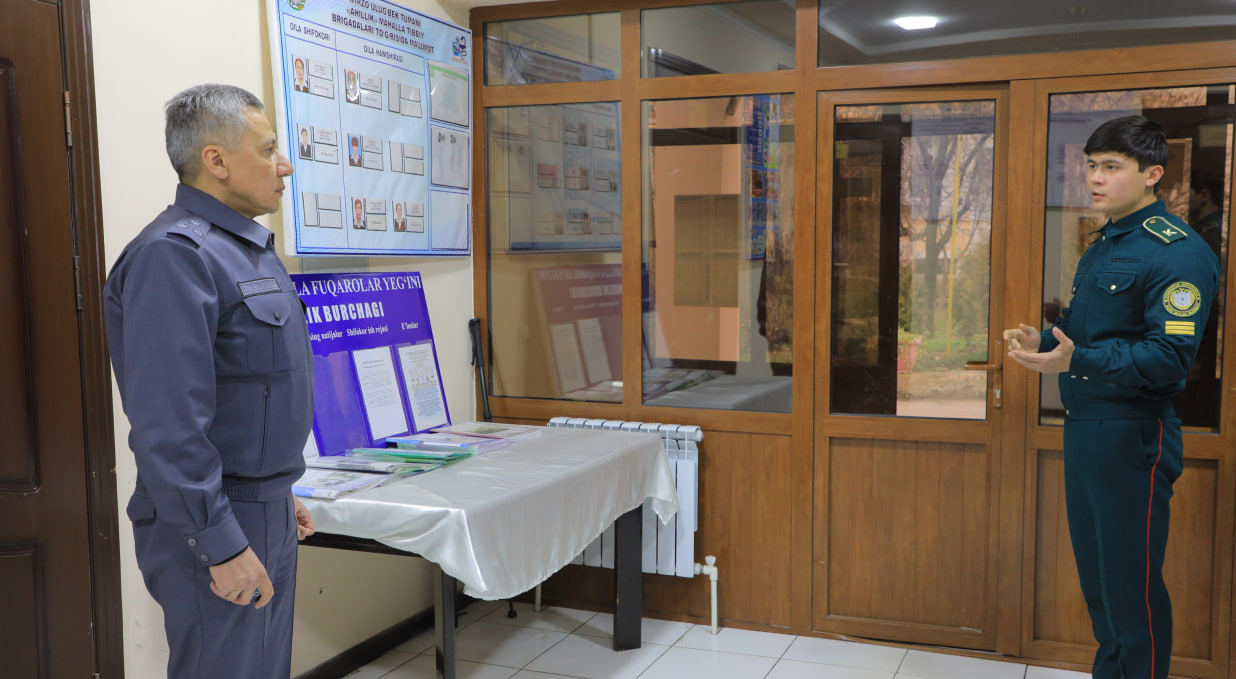 IIV akademiyasi boshlig‘i poytaxtimizning Mirzo Ulug‘bek tumanidagi “Ahillik” mahallasida bo‘lib, xavfsiz muhit yaratish borasida amalga oshirilayotgan ishlarni o‘rgandi.