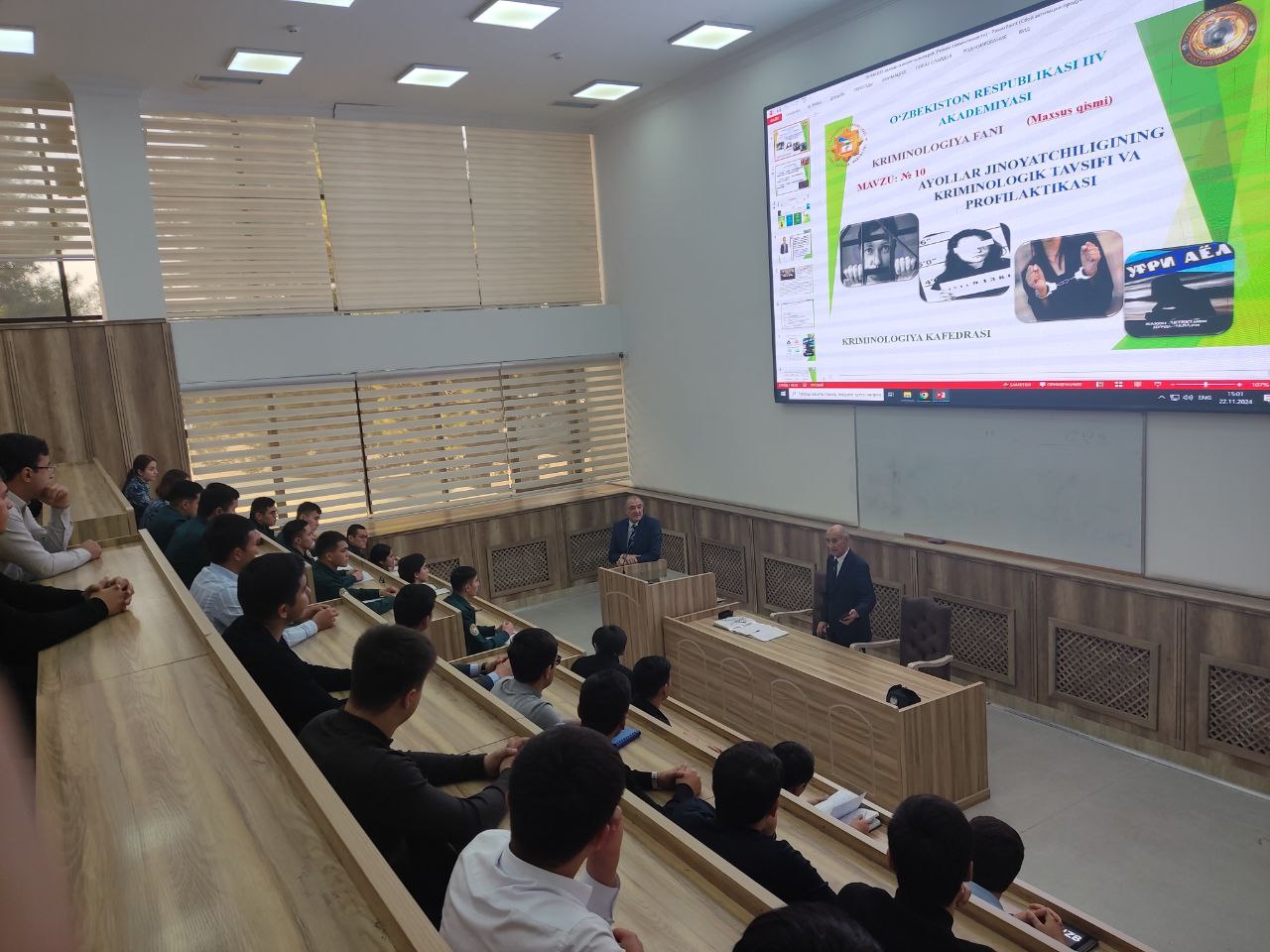 Jamoat xavfsizligi universiteti bilan hamkorlikda tashkil etilgan mashg‘ulotda ayollar jinoyatchiligining asosiy omillari, ular o‘rtasida huquqbuzarliklarning oldini olish, jinoyat uchun javobgarlikni ta’minlash masalalari asosiy mavzu bo‘ldi.