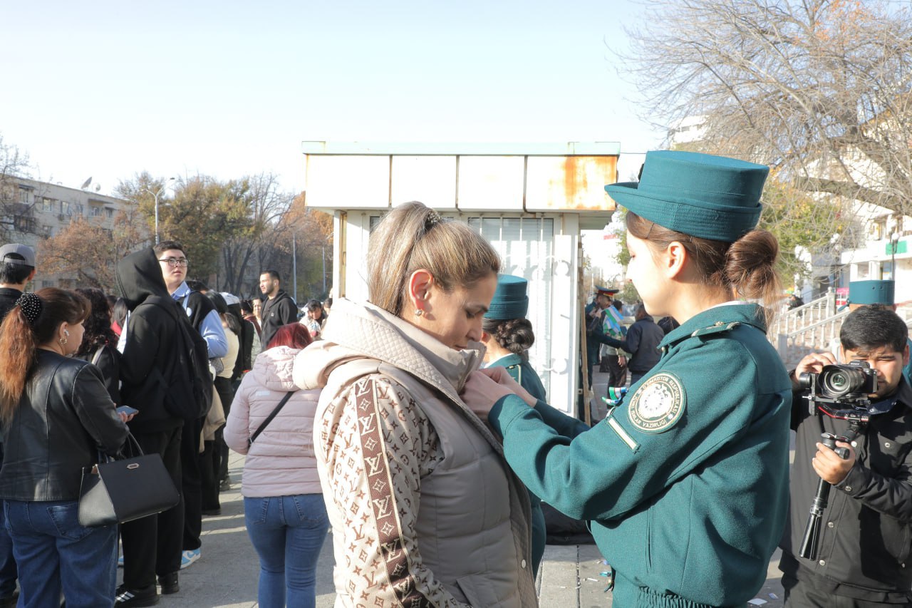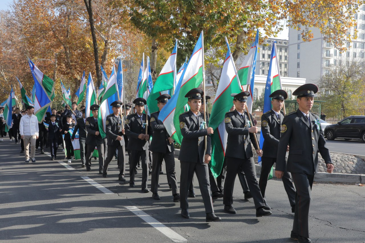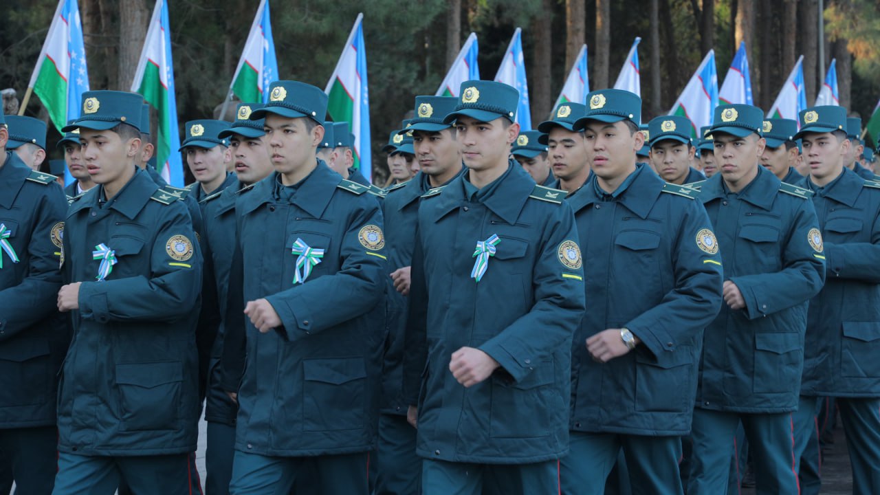 Shundan so‘ng kursantlar bayrog‘imizni baland ko‘tarib, saf qo‘shiqlarini ijro etgan holda tantanali yurish bilan o‘tdilar. Tadbir poytaxt ahli va mehmonlariga “Sharaf lentalari”ni tarqatish bilan davom etdi. Orkestr ijrosidagi kuylar yurtdoshlarimizga chinakam bayromona shukuh bag‘ishladi, desak, mubolag‘a bo‘lmaydi.