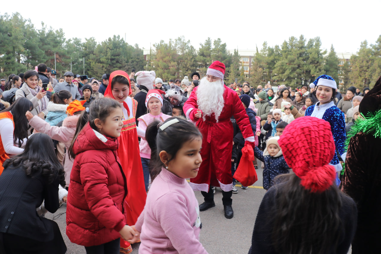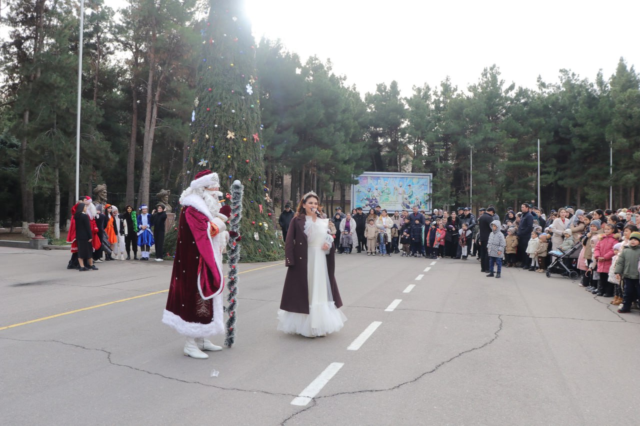 Akademiya xodimlari hamda ishchi-xizmatchilarining oila a’zolari, ayniqsa bolajonlar uchun tashkil etilgan bayram dasturi saf maydonida bezatilgan ulkan archa atrofida boshlandi. Qorbobo va Qorqiz kirib kelayotgan 2026-yil bilan barchani samimiy tabriklab, bolalar uchun quvnoq o‘yinlar, sho‘x kulgular va bayramona chiqishlar uyushtirdi. Quvonchga to‘la lahzalar bolajonlarning yuzida samimiy tabassum, ko‘zlarida esa beg‘ubor hayajon uyg‘otdi.