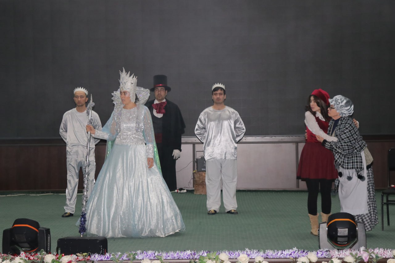 Tadbirning navbatdagi qismi Akademiyaning Ma’naviyat va ma’rifat markazida davom ettirildi. Bu yerda O‘zbekiston Davlat satira teatri ijodkorlari tomonidan sahnalashtirilgan “Qor malikasi” ertagi tomoshabinlar e’tiboriga havola etildi. Mazkur sahna ko‘rinishi, ayniqsa, yosh bolajonlar qalbiga o‘zgacha zavq va iliq taassurot ulashib, bayram shukuhini yanada oshirdi.