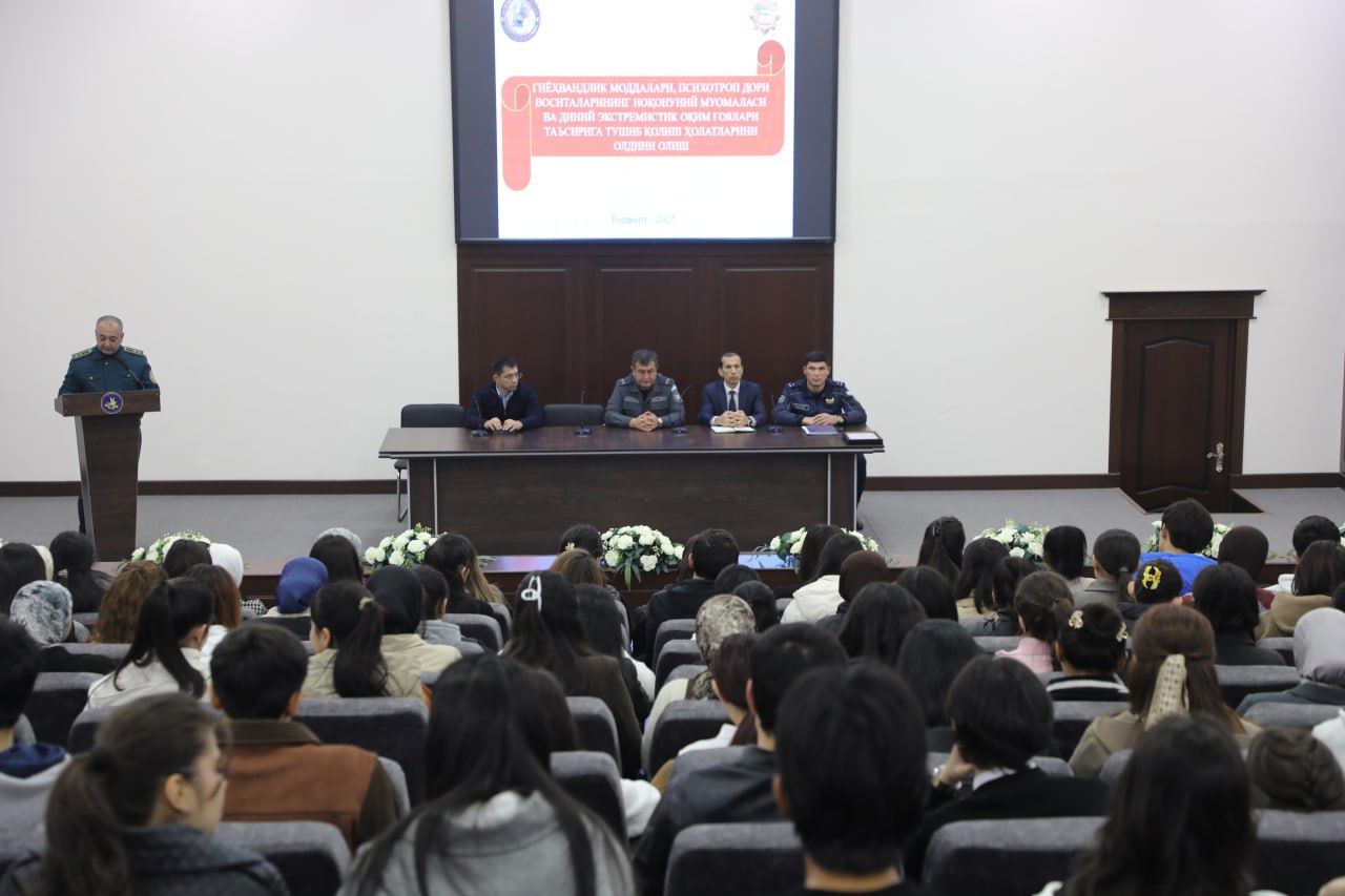 Ta’lim muassasasi rahbariyati, talabalar va professor-o‘qituvchilar ishtirokida o‘tgan tadbirda IIV akademiyasi magistraturasi tinglovchisi, podpolkovnik Azizbek Mamatov so‘zga chiqib, jamiyat hayotiga xavf solayotgan ma’naviy tahdidlarga to‘xtaldi.