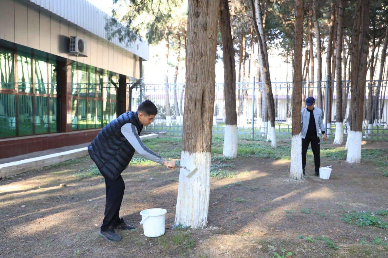 Shuningdek tadbir munosabati bilan ta’lim muassasasi hududidagi manzarali daraxtlarga ishlov berilib, binolar atrofi tartibga keltirildi.