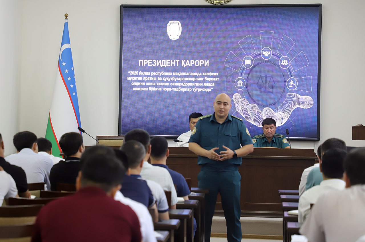 O‘quv seminarida asosiy e’tibor davlatimiz rahbarining “2025-yilda respublika mahallalarida xavfsiz muhitni yaratish va huquqbuzarliklarning barvaqt oldini olish tizimi samaradorligini yanada oshirish bo‘yicha chora-tadbirlar to‘g‘risida”gi qarori ijrosiga qaratildi.