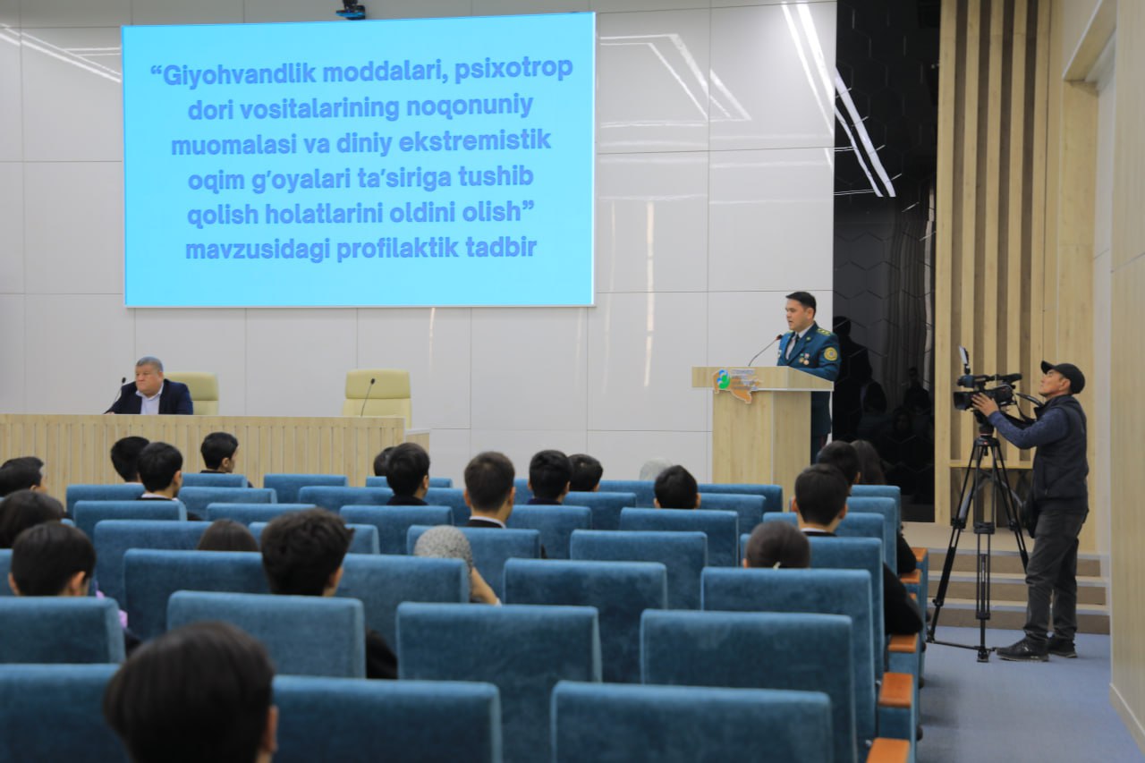 Ta’lim muassasasi rahbariyati, talabalar va professor-o‘qituvchilar ishtirokida o‘tgan tadbirda IIV akademiyasi magistraturasi tinglovchisi, podpolkovnik Sardorbek Yusupov so‘zga chiqib, jamiyat hayotiga xavf solayotgan ma’naviy tahdidlarga to‘xtaldi.