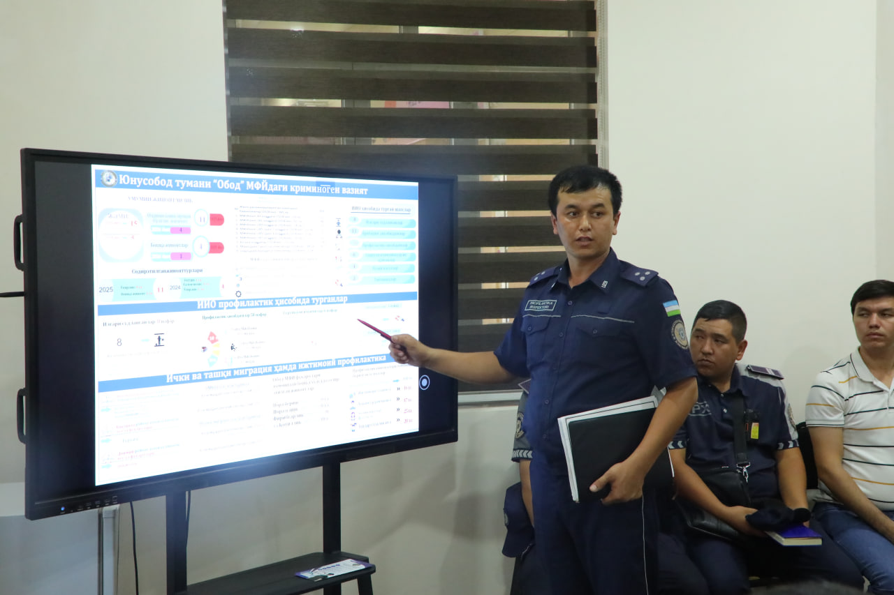 Bu borada davlatimiz rahbarining 2025-yil 18-avgustdagi PQ-253-son qarori tizim natijadorligini yanada oshirishda muhim ahamiyat kasb etdi va kriminogen vaziyati murakkab mahallalarda alohida yondashuv asosida manzilli ishlash mexanizmlari joriy qilindi. Akademiya boshlig‘i mazkur qaror ijrosini ta’minlash va hududlarda amalga oshirilayotgan ishlarni o‘rganish maqsadida poytaxtimizning Yunusobod tumanidagi mahallalarda bo‘ldi.