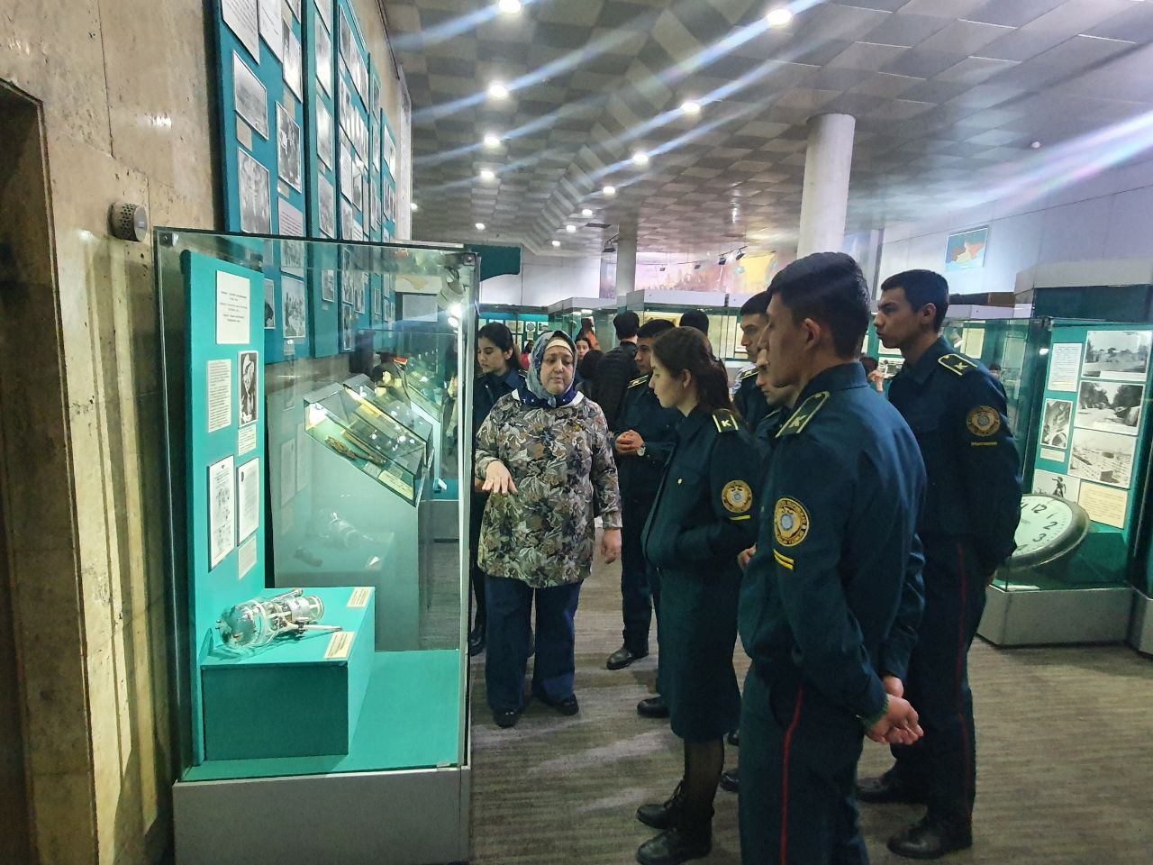 Tadbir chog‘ida kursantlar “Shon-sharaf” davlat muzeyi eksponatlari hamda “G‘alaba bog‘i” yodgorlik majmuasining boshqa monumentlari bilan batafsil tanishdilar. Ularga xalqimizning shonli tarixi, ayniqsa Ikkinchi jahon urushi yillaridagi qahramonligi haqida so‘zlab berildi.
