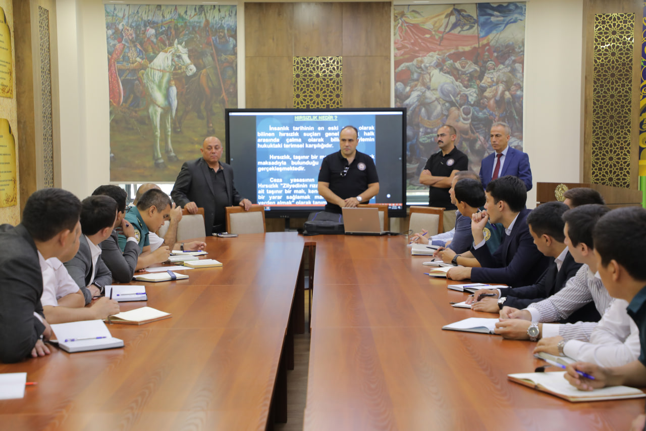 Tajribali mutaxassislar tomonidan hududiy ichki ishlar organlarining tergov xizmati xodimlari hamda Akademiya ixtisoslik va yuridik kafedralari professor-o‘qituvchilariga o‘g‘rilik va uyushgan jinoyatchilikka qarshi kurashish, ushbu jinoyatlarning o‘ziga xos xususiyatlari, ularni fosh etish va tergov qilish metodlari, shuningdek Turkiya tajribasining muhim jihatlari bo‘yicha tushunchalar berildi.