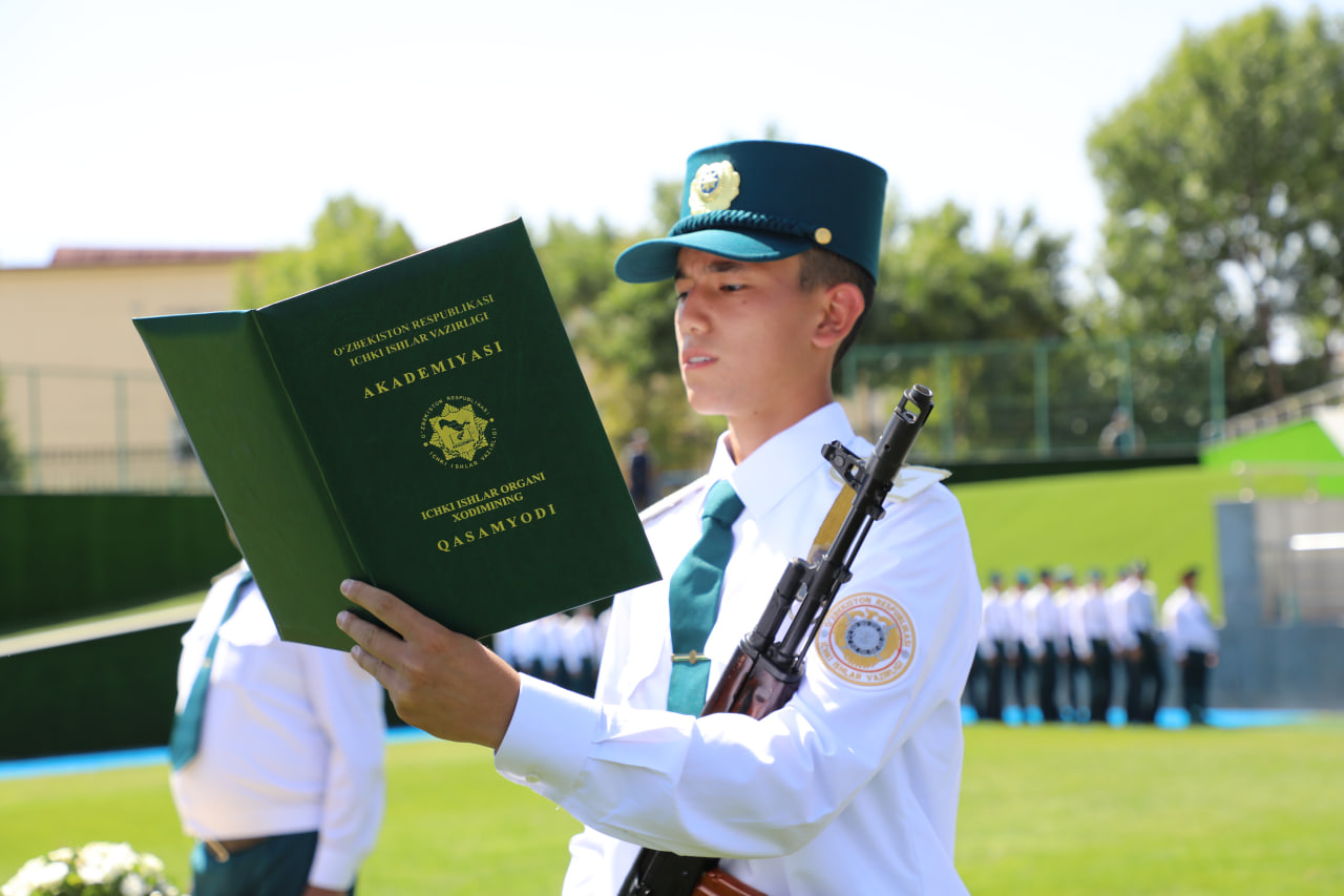 Ana shu ezgu maqsad yo‘lida Ichki ishlar vazirligi akademiyasiga o‘qishga kirgan yigit-qizlar tantanali ruhda qasamyod qildilar. Shu munosabat bilan poytaxtimizdagi “JAR” stadionida bo‘lib o‘tgan tadbirda Ichki ishlar vazirligi rahbariyati, qator davlat organlaridan mehmonlar, keng jamoatchilik hamda ommaviy axborot vositalari vakillari ishtirok etdi.