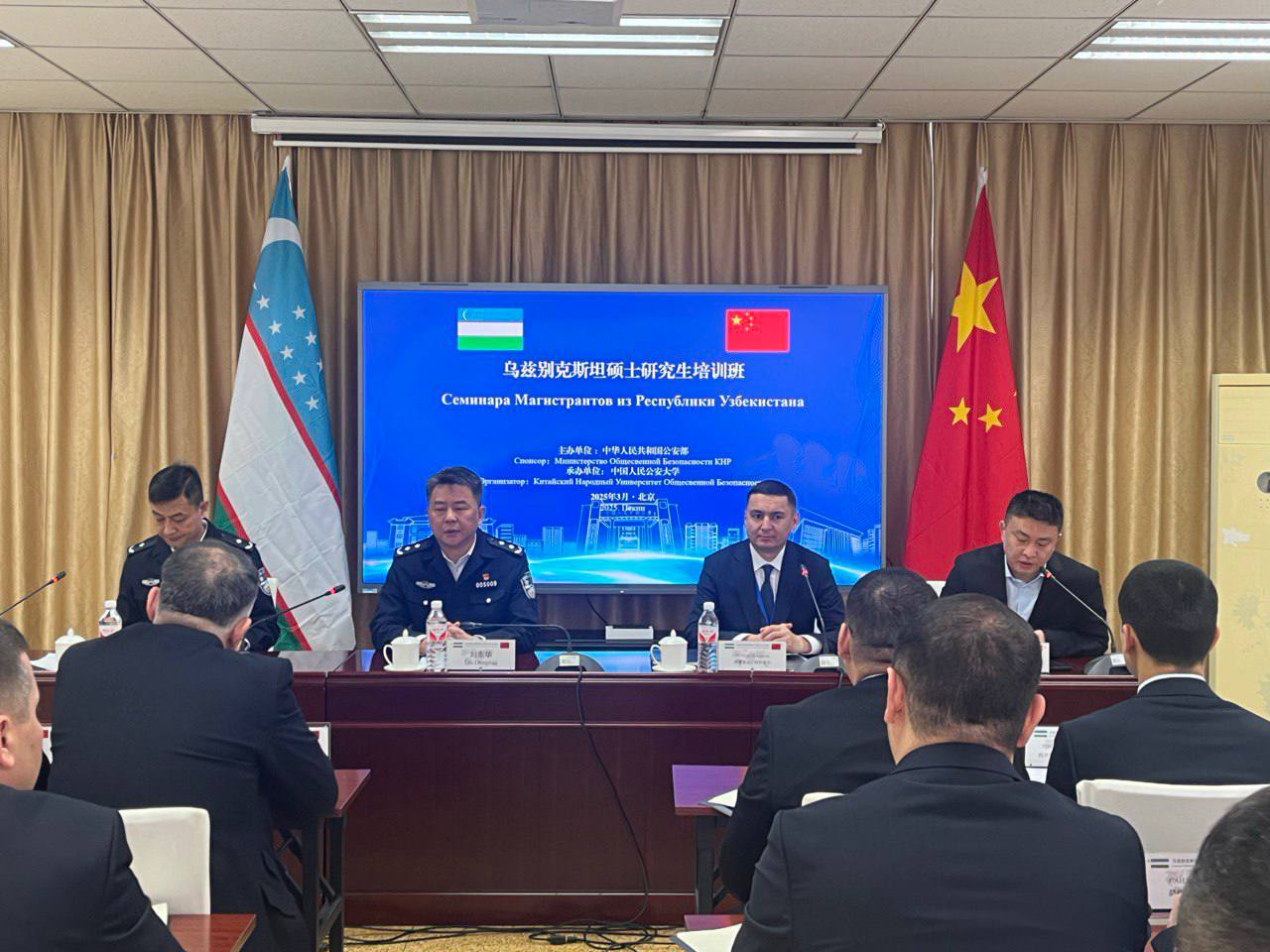 Xorij safari davomida Xitoy Jamoat xavfsizligi universitetida o‘quv kursi tashkil qilindi. Universitetning yetakchi mutaxassislari tomonidan politsiya tuzilmalari faoliyatini tashkil qilish, jamoat xavfsizligini ta’minlash, favqulodda vaziyatlarda kuch va vositalarni boshqarish, zamonaviy tahdid va xatarlarga qarshi kurashish, shuningdek, rahbarlik ko‘nikmalarini shakllantirishga qaratilgan mashg‘ulotlar tashkil qilindi.