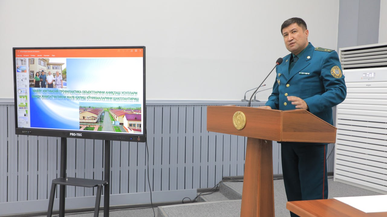 Shundan so‘ng ta’lim muassasasi professor-o‘qituvchilari tomonidan “Mahalla yettiligi” tizimining huquqiy asoslari”, “Ijtimoiy profilaktika ob’ektlarini aniqlash usullari”, “Ijtimoiy moslashtirish dasturlari natijadorligini oshirish”, “Ijtimoiy profilaktika haftaligi”ning maqsad va vazifalari”, “Huquqbuzarliklar profilaktikasiga keng jamoatchilikni jalb qilish” kabi dolzarb mavzularda interfaol mashg‘ulotlar o‘tkazildi.