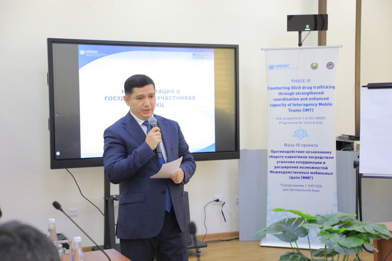 Tadbir BMTning Narkotiklar va jinoyatchilik bo‘yicha boshqarmasi (UNODC) mintaqaviy vakolatxonasi tomonidan “Idoralararo mobil guruhlarning muvofiqlashtiruvchi rolini oshirish va imkoniyatlarini kengaytirish orqali giyohvandlik vositalarining noqonuniy muomalasiga qarshi kurashish” loyihasi doirasida tashkil qilindi.