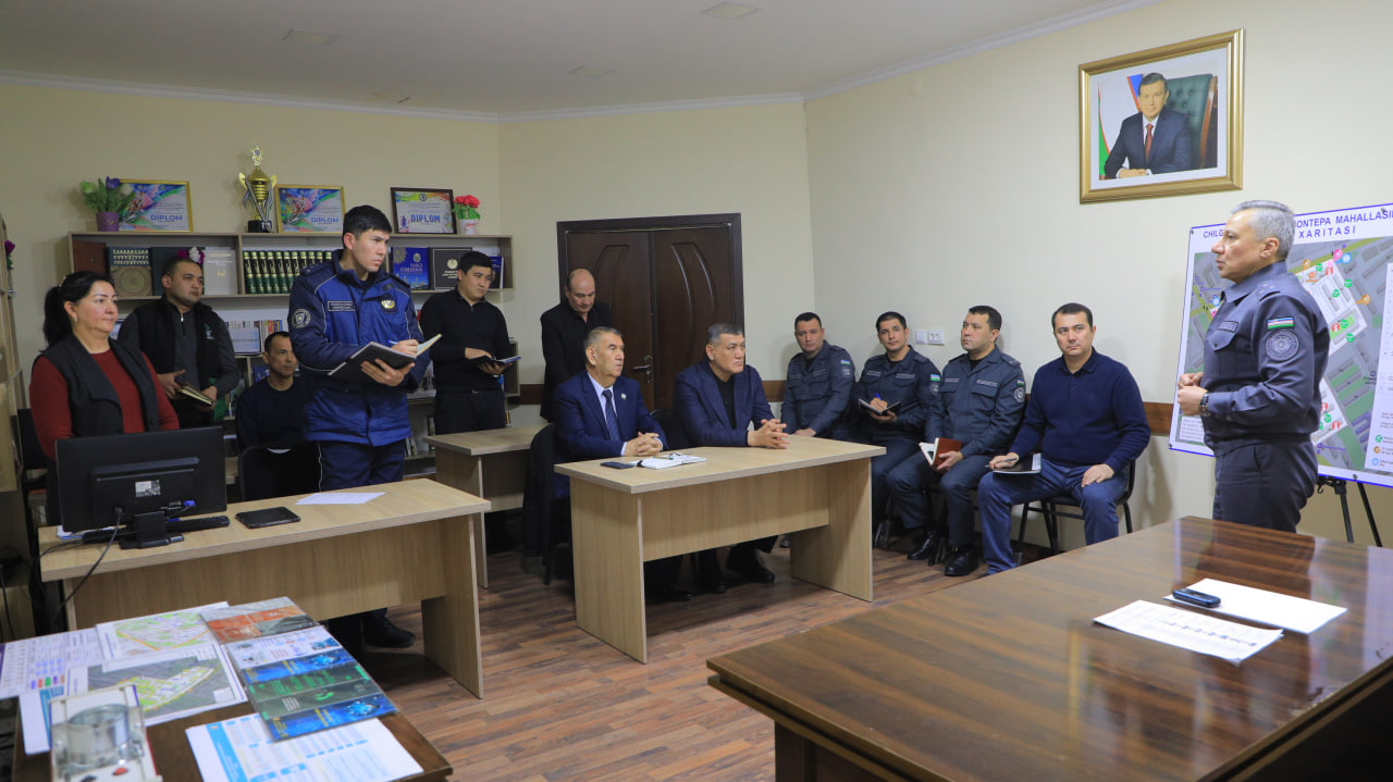 O‘rganishlar “Tirsakobod” mahallasidan boshlandi. Mas’ullar va “mahalla yettiligi” xodimlari bilan bo‘lgan yig‘ilishda jamoat xavfsizligini ta’minlash, jinoyatchilikni jilovlash, aholi muammolarini o‘rganish, murojaatlar bilan ishlash borasida ko‘rilayotgan chora-tadbirlar muhokama qilindi.