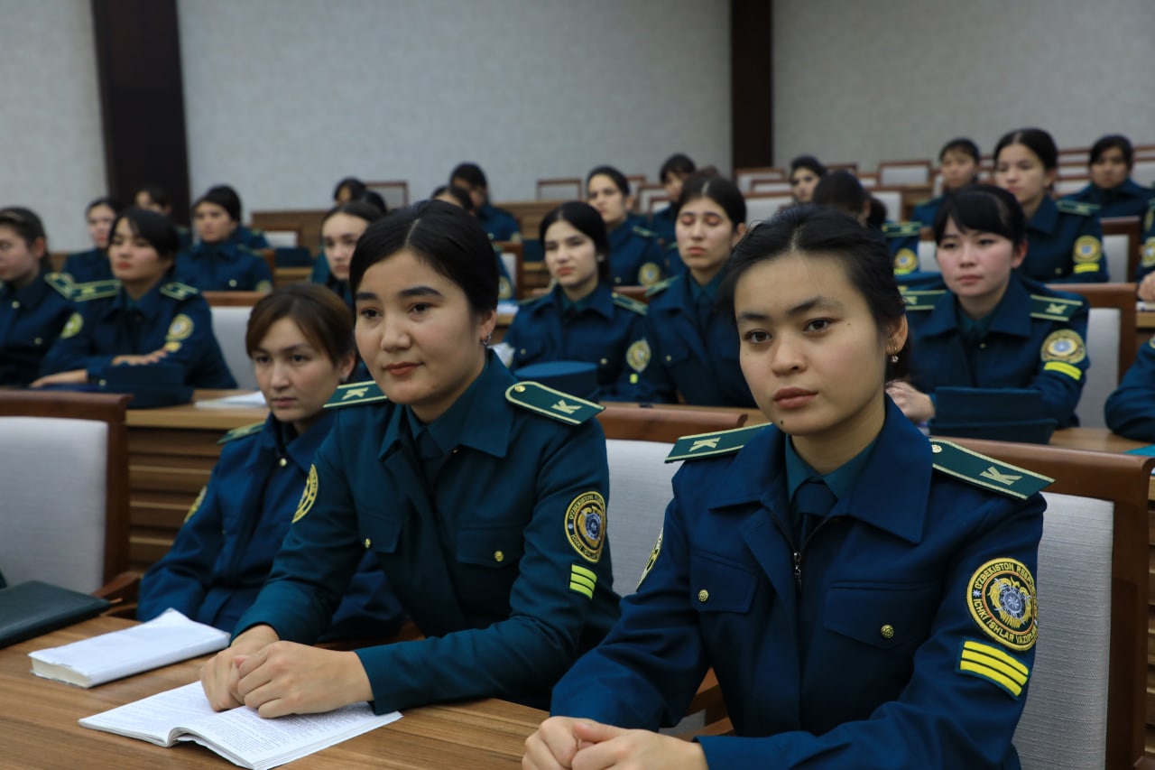 Ichki ishlar vazirligi akademiyasida “Ayoli qadrli yurtning kelajagi buyukdir” mavzuida uchrashuv bo‘lib o‘tdi. O‘quv-saf qismi tashabbusi bilan tashkil etilgan tadbirda ma’naviyat targ‘ibotchilari, hakamlik sudlari vakillari, qizlar otryadi ofitserlari hamda kursantlar ishtirok etdi.